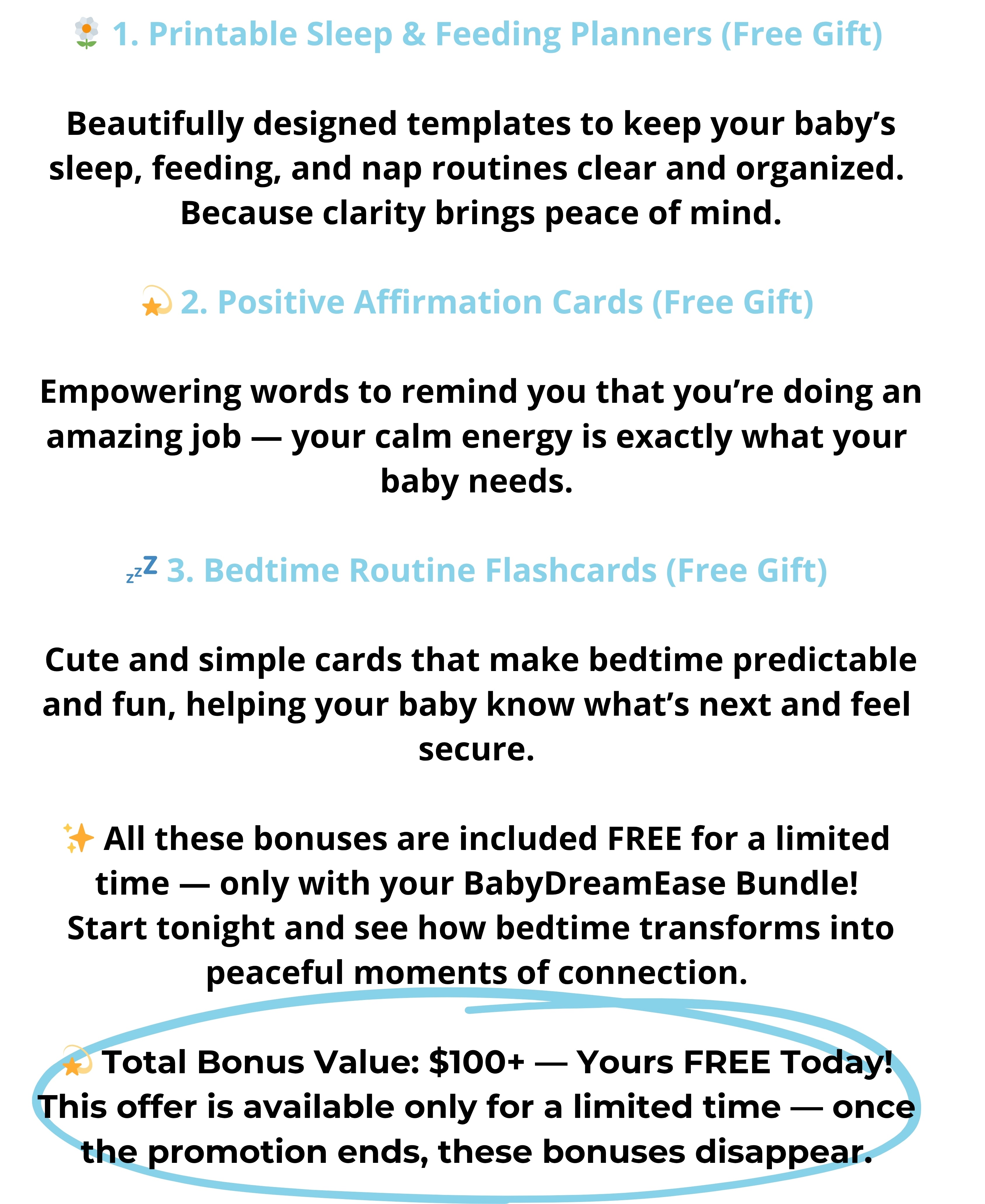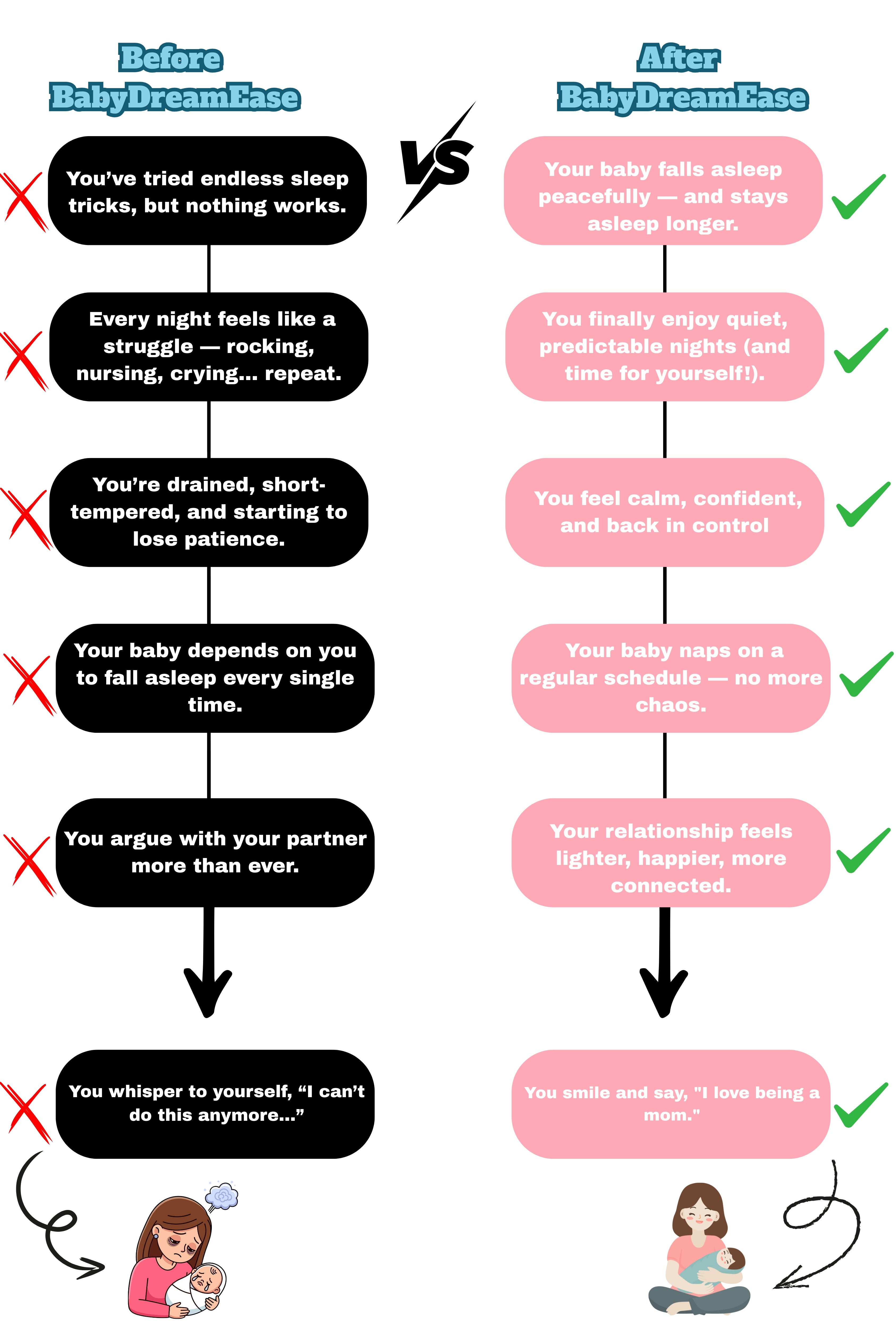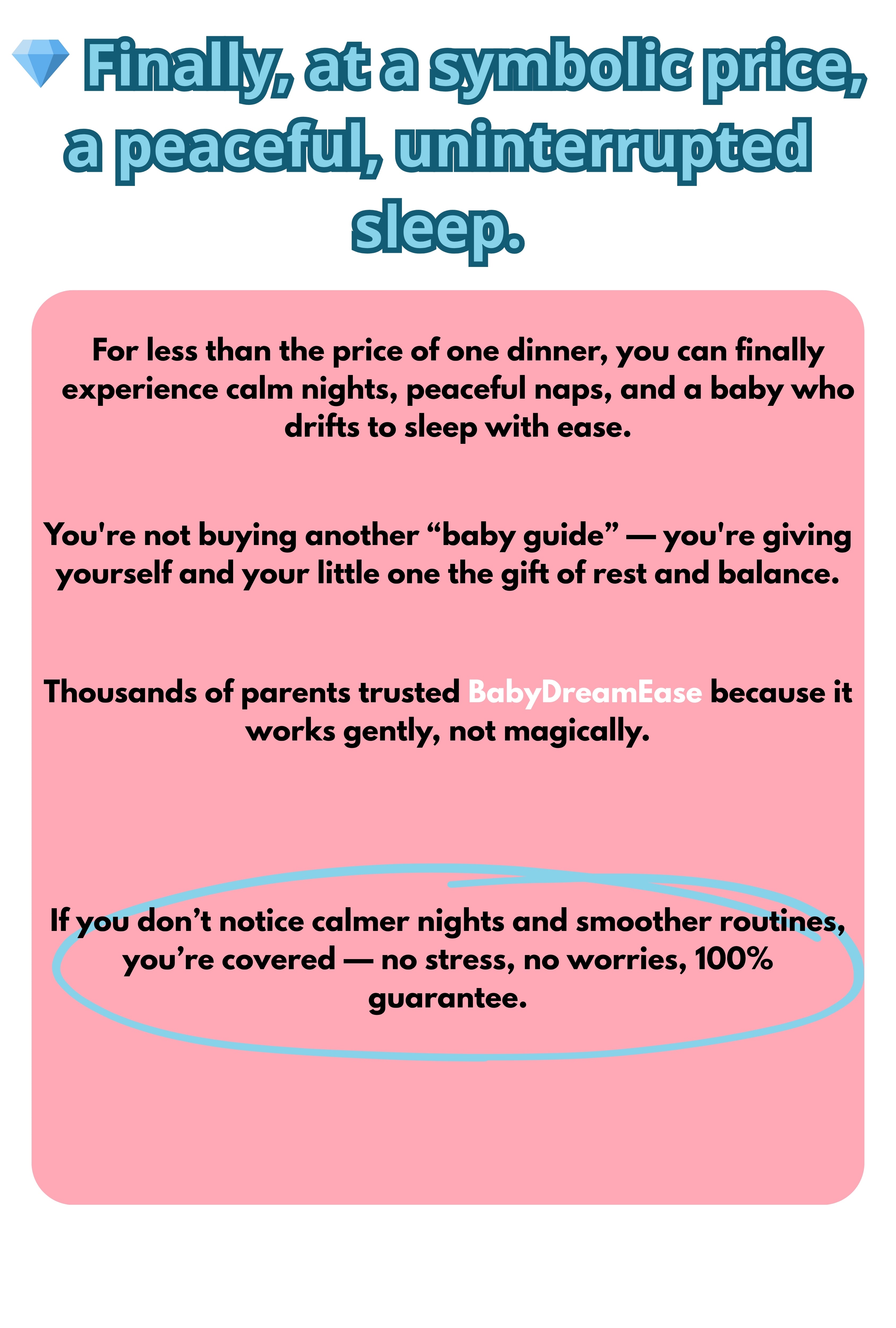 Yes! The BabyDreamEase method is designed for babies and toddlers (0–3 years). It adapts to your child’s stage — whether it’s newborn naps or toddler bedtime battles. Every parent can use it safely and effectively.